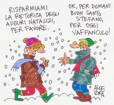| Mancano ancora un po' di giorni a Natale ed io vorrei avere uno spirito giusto, ma questa mi ha fatto troppo ridere! In fondo ognuno vive il "suo Natale" , con i propri pesi aggiunti e le proprie insoddisfazioni... chi riesce ad aprire un po' di più le porte fa entrare più luce . Una volta che la luce della Festa è dentro, ci si può un po' rilassare e godersi i segni ed i simboli della Vita, che questa ricorrenza ci rammenta ogni anno, anzi alla fine di ogni anno. |